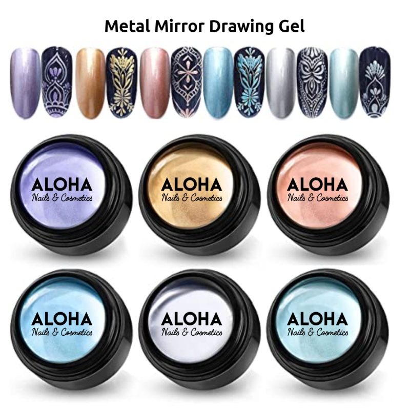 UV/LED Metal Mirror Drawing Gel 8ml σε 6 Μεταλλικές Αποχρώσεις / ALOHA Nails & Cosmetics